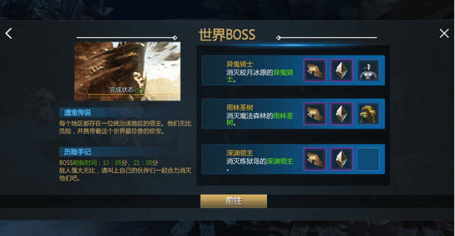 在每天特定的時間,每個地圖的某個區域將會刷新世界boss,玩家可通過組隊的方式搶奪世界boss的所有權。小韻目前隻參與過一次世界boss,個人感覺難度不高,而且因為當時隻有自己一對隊伍所以並不清楚boss所掉獎勵是以什麼樣的方式分配的。