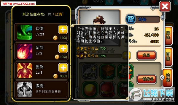 隨著劉備進階,技能加點功能也將展現在大家麵前,這裏的技能點是隨著時間增加的,每隔一定時間增加1點,累計上限是10點。前兩個技能的等級上限是英雄的等級。這裏還是要推薦大家先加劉備或孫尚香的回血技能。畢竟確保團隊生存是最重要的嘛~~!