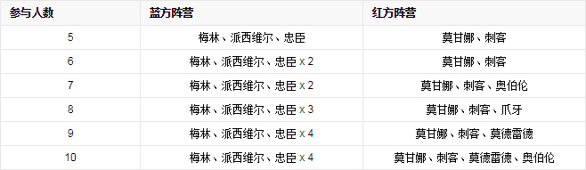成功3個任務,則進入刺殺階段,若大法師梅林被刺殺,藍方依然失敗,即成功任務的同時,藍方要保護好大法師梅林。