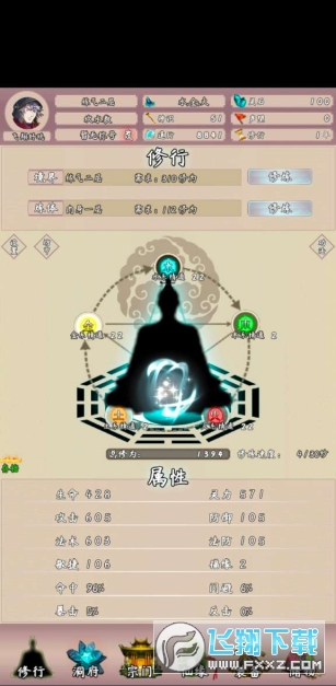 1、靈根:開局時隨機五行靈根,最少為單靈根,最多為五靈根。