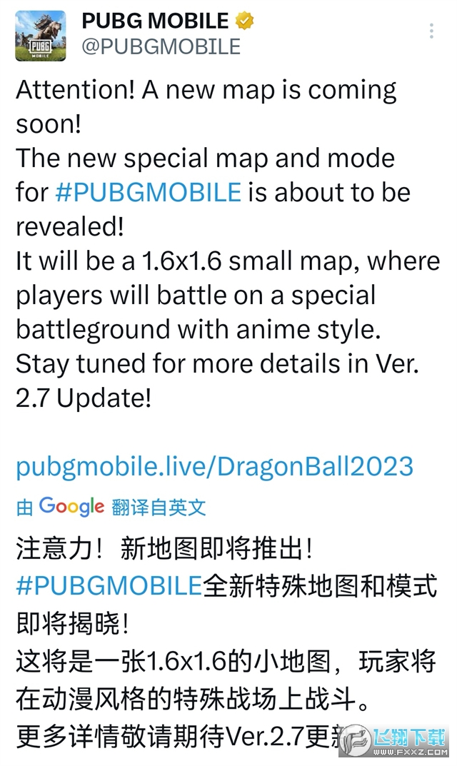 2.7版本還會有全新的特殊地圖和模式上線!新地圖將會是動漫風格的特殊戰場,感覺很可能會和龍珠超的風格相似呢!