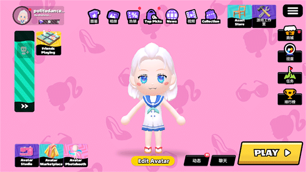 1、玩家進入遊戲後,可以自由搭配虛擬形象,發型、臉型、服裝等都可以自由搭配選擇。