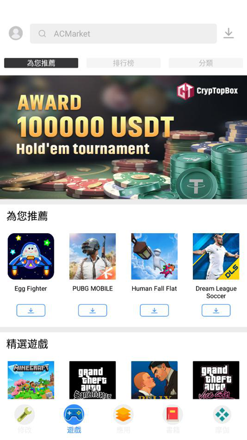 acmarket官方最新版是一款熱門的安卓遊戲商店軟件,軟件裏提供了全球各地的遊戲軟件,用戶可以通過關鍵詞搜索自己需要的應用或遊戲,還提供熱門應用和遊戲榜單,幫助用戶發現最受歡迎的內容,根據用戶的下載曆史和偏好,提供個性化的應用推薦,還有豐富的破解等內容,需要的小夥伴可以下載!