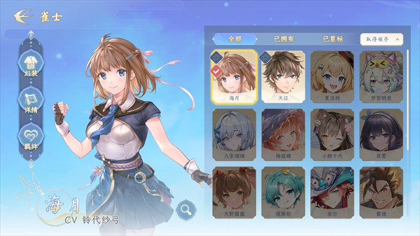 在雀士這個界麵,玩家可以自由查看已獲得和未獲得的各種雀士,並且為雀士搭配不同的時裝,查看他們的屬性加成,並且還可以通過送禮還提升羈絆值,解鎖隱藏劇情。