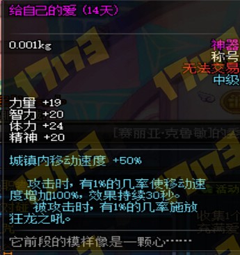 午夜大衣禮盒(可在五種防具中選擇一種,無法交易,暴擊傷害+7%)