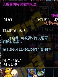 購買後有一個禮盒,賬號綁定,打開後五個攻略集,無法交易