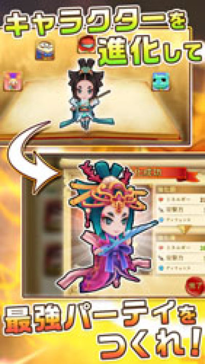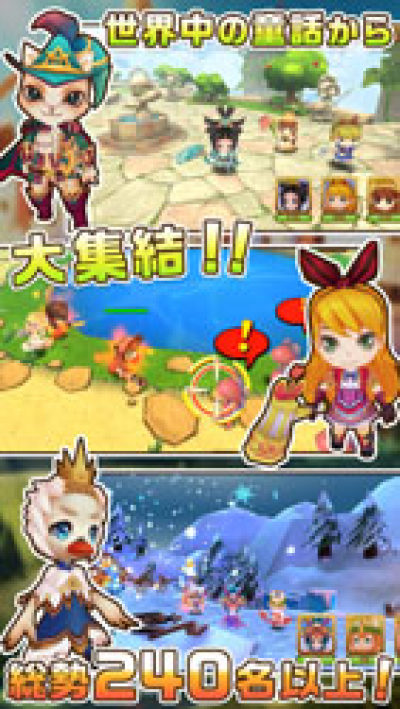 收集喜歡的童話角色,組成隊伍,並通關迷宮。戰鬥操作隻需要點擊就行。因為搭載這自動遊戲功能。所以可以輕快通關。另外,如果用特定的角色組成隊伍的話,會發揮特殊力量。從魔神的手中解放夥伴。強化隊伍和裝備,再挑戰!