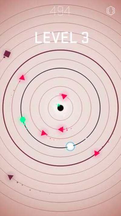 屏幕上的圓環持續不斷地被中心黑洞吸入——長時間注視使人有輕微的眩暈感,而你所控製的光子隻能在這些圓環上轉動。為了避免靠近黑洞,你必須不斷點擊屏幕在環間跳躍。聽起來似乎很簡單,但顯然遊戲並不隻是點擊而已。