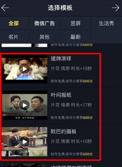 很多的功能供你選擇,有廣告片、視頻相冊、開場片頭、影片、微信小視頻等等超多功能,你想要生成哪一個就點哪一個就可以了。