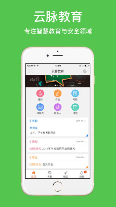 雲脈教育App是為了方便家長接收雲脈教育平台通知、作業、考勤等信息的手機應用。