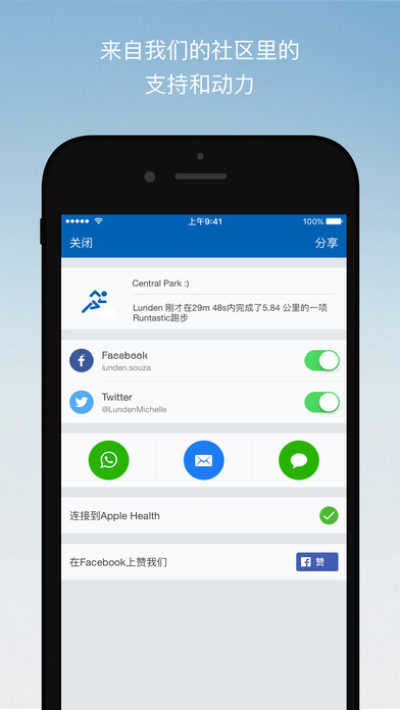 Runtastic應用程序通過GPS來映射並追蹤例如跑步,慢跑,騎行和步行這些體育和健身活動方麵的數據。