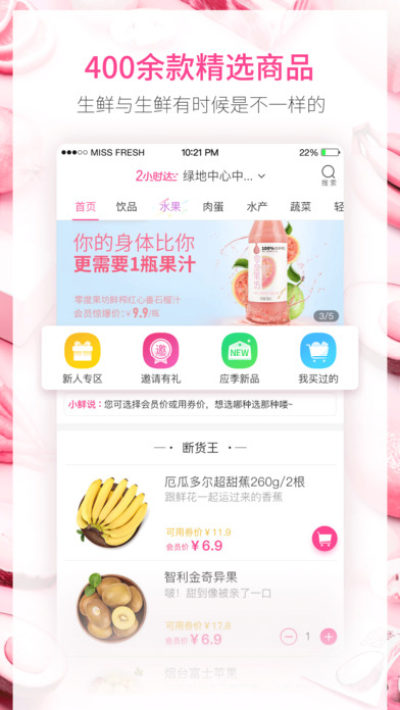 優質生鮮,2小時到。下載注冊即送新人專享優惠。