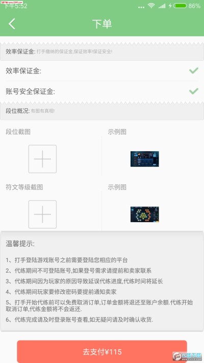 【主要功能】 注冊賬號、接單代練、上傳截圖、充值、提現、訂單管理、跟蹤訂單狀態