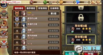 通過的層數越高,在排行榜的排名越高,且相對獲得符文號位也不同,排行榜在每周一的零點進行重置。而且盡管不是三星也可以進行掃蕩哦~