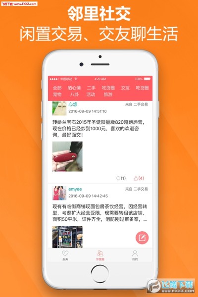 2、業主通過手機app,則可以實時查收物業信息周邊商家優惠,鄰裏和諧互動及小區快送便捷服務等特權服務;