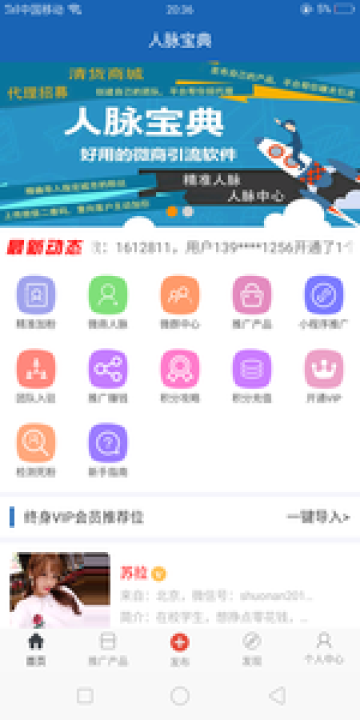 人脈寶典免費版專為微商用戶提供在線交流、區域行業人脈、產品展示、代理招募等服務,同時還提供在線清理僵屍粉功能,讓微商生意不再難做,在這裏常用的微商工具都可以輕鬆使用。
