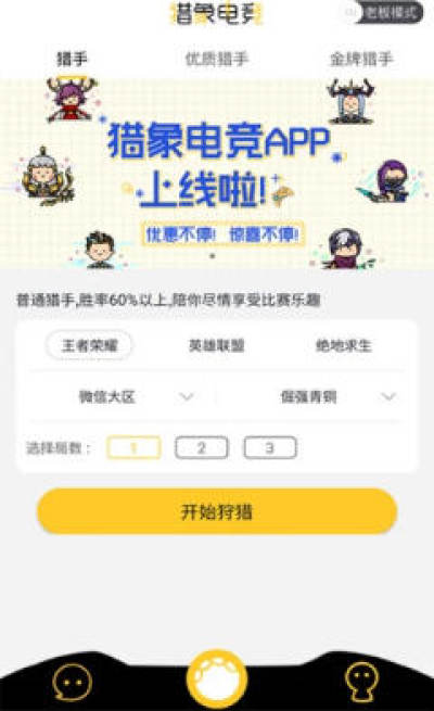 獵象電競是一款移動端娛樂電競社交APP。通過高效便捷的方式連接遊戲高玩與普通玩家,真正實現了玩家們隨時隨地可進行技能變現、電競教學、娛樂社交交友等