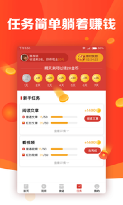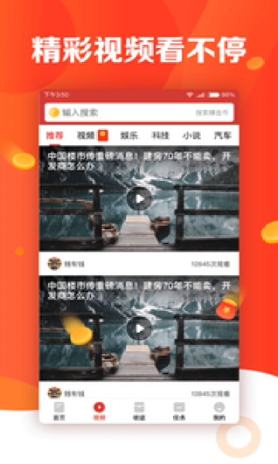 【看視頻得紅包】每天觀看視頻,都有機會進行金幣獎勵