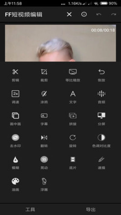 包括20多個常用音視頻編輯操作,裁剪時長,剪切畫麵、倒放、調速、音頻混音、拚接、字幕等等。
