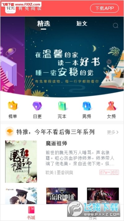 3、精心打造在線書城,精選熱門小說,精選專題,告別書荒,手機必備的看書軟件!