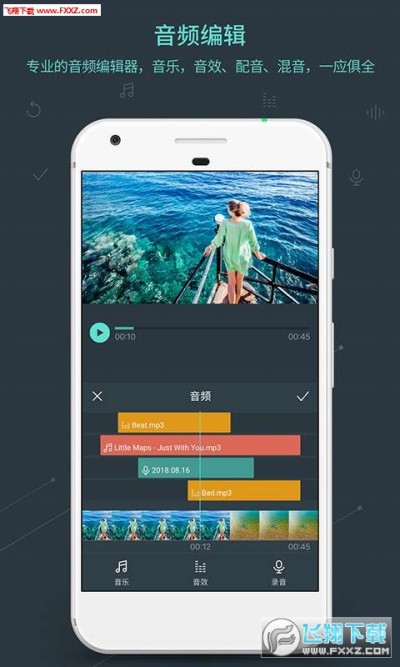 - 音頻: 音樂、音效、配音、混音,輕鬆編輯音軌