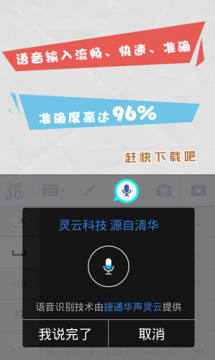 (4)準確的語音識別率:靈雲輸入法應用捷通華聲“靈雲”平台提供的語音識別技術能力,所說即所寫,具備自學習能力,語音識別率越用越高,與手寫、文字識別、鍵盤輸入無縫結合,相得益彰。