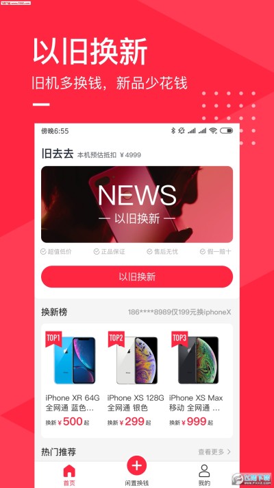 舊機多換錢,新品少花錢,小資生活,就上舊去去。回收的品類有手機、平板電腦、筆記本等。換新的品類有手機、電腦、數碼周邊、智能生活、酷玩、美妝、潮鞋等。