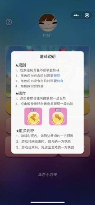 點擊右鍵向前攀爬一級台階,點擊左鍵轉身並攀爬一級台階,先到達終點的一方獲勝。