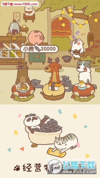 “動物餐廳”是經營類遊戲,遊戲畫風很可愛的,是以貓咪為主,通過開餐廳,可以幫助貓咪收集小魚幹