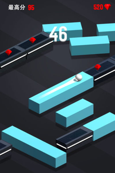3、玩家越往前麵滾動,那些方塊給與玩家的推進速度將會越來越快;