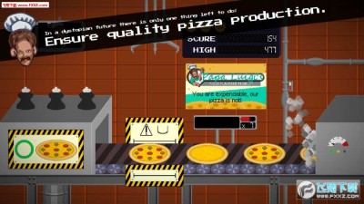 當披薩餅沿著傳送帶落下時,請銷毀所有不符合路易吉老爹嚴格質量標準的食品。