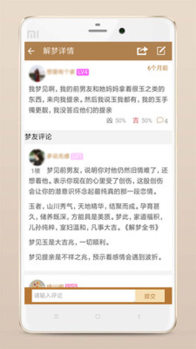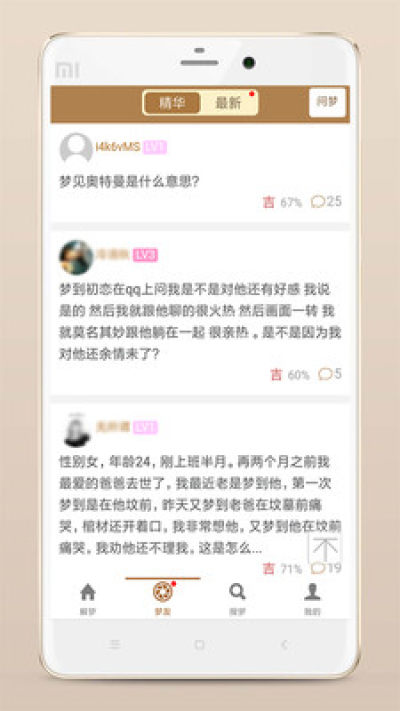 3.實時的夢境問答:廣大的夢友們可以將自己的疑難夢境在夢友專區發布出來,也可以幫別的夢友解夢。夢友小白可以在這裏找到自己夢境的答案,大神夢友可以在這裏施展才華;