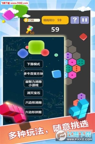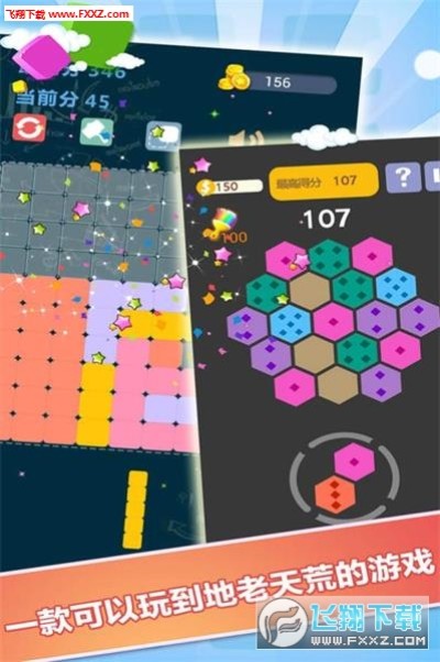 5、六邊形消除:玩法較之經典數獨遊戲更自由,橫、左斜、右斜都可消除得分,同樣是備選方塊無法放置時消除遊戲結束。