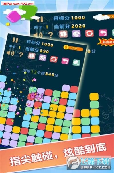 消除:過關玩法,點擊相同顏色的方塊即可消除