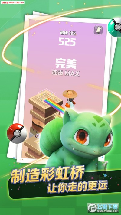 3、豎版的遊戲操控,通過跳一跳來開啟各種精靈球,捕捉萌萌噠的小精靈。