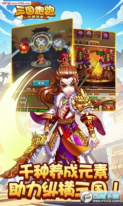 輕鬆掛機:當然,《三國跑跑》的樂趣不僅僅如此,如經典的三大職業都具備不同的PVE/PVP技能搭配,搭配不同的技能,可以戰勝不同的對手;裝備的煉化與打造;忠心耿耿的搭檔武將與你並肩作戰上戰場等這些都為你的三國之路增添色彩。同時為了慶賀《三國跑跑》不刪檔測試的開啟,我們還準備了精彩的活動與玩家同樂!麵對著不容錯過的經典之作,您還會有理由錯過嗎!