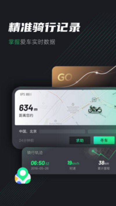 車輛定位、騎行軌跡、曆史停留、騎行數據、騎行日報隨時隨地查看
