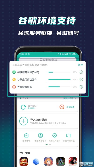 用戶無需執行任何操作,OurPlay將自動匹配用戶的手機型號以安裝相應的GMS套件,並進行同步和自動更新。