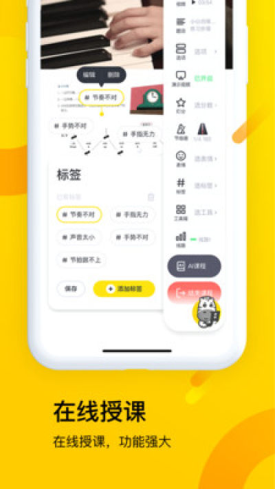 2. 在線課堂提供譜麵標注,視頻示範等功能,教師可以省去大量的基礎示範,提高課堂效率。