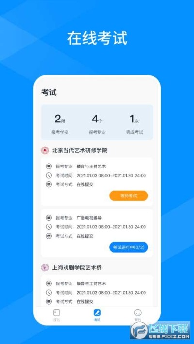 線上考app是一款手機考試報名平台,這款軟件主要是針對藝術類的校考打造的,在線上考app上可以查看各類藝術院校的招生信息,在線進行考試報名,查看考試的信息,在手機上在線考試之後還能查詢考試結果!