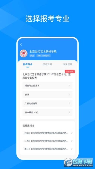 【藝考報名】院校發布招生信息,考生選擇專業進行報名。
