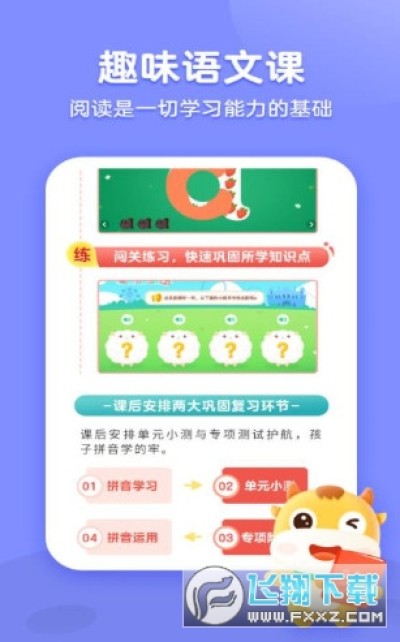 2.一款風靡全國小學生在線學習語文的App!專注幼小銜接、小學閱讀,小升初語文專項等同步課程,將內容與課本結合,幫助學生實現在家就能學習體驗!授課采用輕鬆、結合老師風趣、易懂的講解方式,讓知識不再難學!