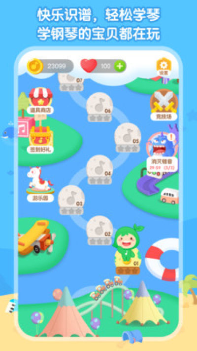 識譜大作戰通過遊戲闖關的形式,幫助正在學鋼琴的寶貝完成枯燥的識譜練習。