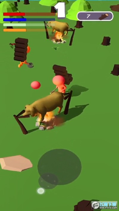 這是一場砍柴烤乳豬的競賽!看掉周邊的大樹,積攢木材,放到烤架上,看誰先把乳豬烤熟。你可以自己去砍柴,也可以投機去拾取其他玩家看下的木材,既比拚智力,又比拚速度,看看你能得第幾吧!