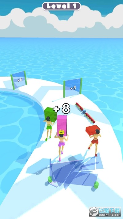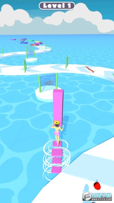 3、操控好自己的小姐姐角色來在關卡中跑酷,收集道具來使用水上漂功能。