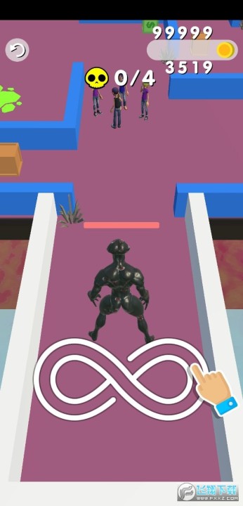 操縱自己的怪物,在這個世界裏對人類進行獵殺,你可以很容易的破壞牆壁,但是人類隻能夠走正常的道路,升級你的屬性,能夠更快的獵殺人類,通過關卡