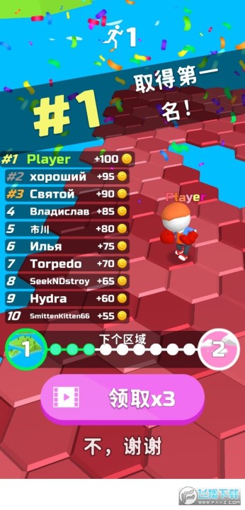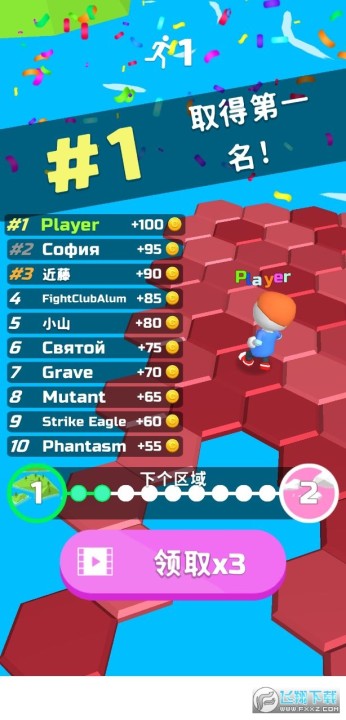 在這款遊戲中,玩家需要操縱自己的人物與對手在同一個地圖中進行博弈,每個玩家踩到的方塊都會消失,在地圖麵積將會越來越小,在有限的麵積下,努力存活到最後。