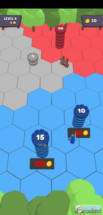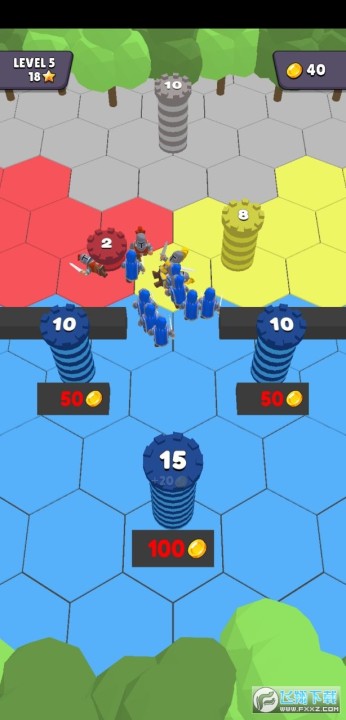 遊戲開啟後,塔將會產生金幣,你可以積累金幣用來升級自己的塔,也可以招募士兵進攻敵人的塔,每一個關卡中的敵人數量都是不同的,玩家需要發揮自己的指揮才能夠獲得勝利。