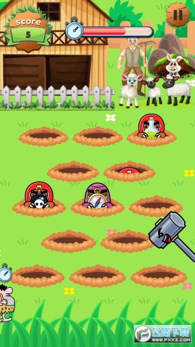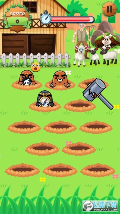 3、簡單的點擊來完成任務,在限定的時間內容來擊打更多的鼴鼠得到高分。