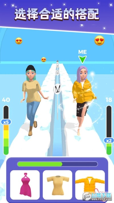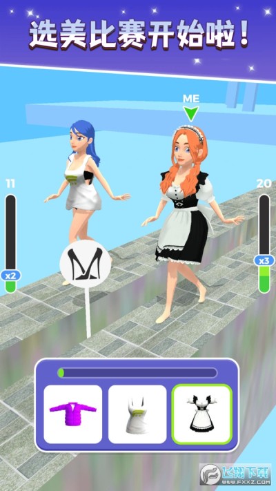 2、玩家將和對手一起進行走秀,在道路上選擇合適的衣物進行搭配;